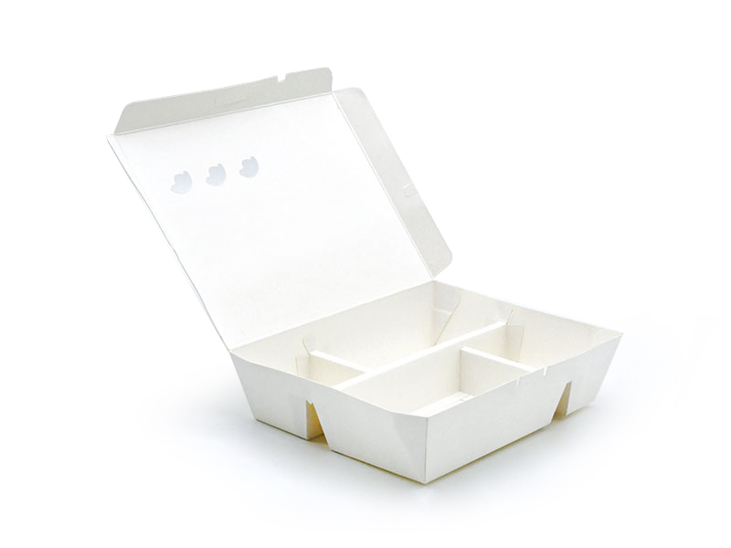 CAJA DE PAPEL ALIMENTICIO MULTICOMPARTIMENTAL CON FORMA DE CONCHA