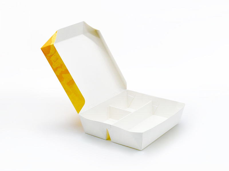 CAJA DE PAPEL ALIMENTICIO MULTICOMPARTIMENTAL CON FORMA DE CONCHA