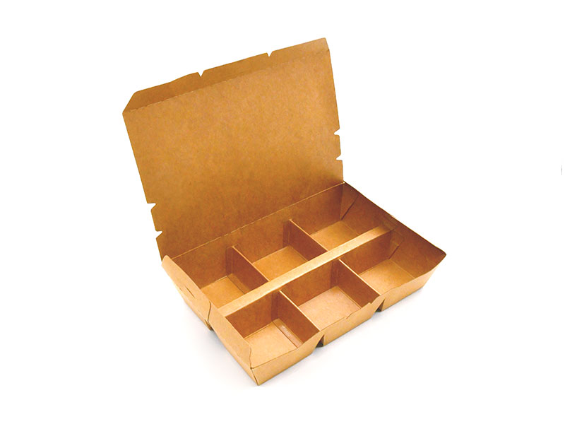 CAJA DE PAPEL ALIMENTICIO MULTICOMPARTIMENTAL CON FORMA DE CONCHA